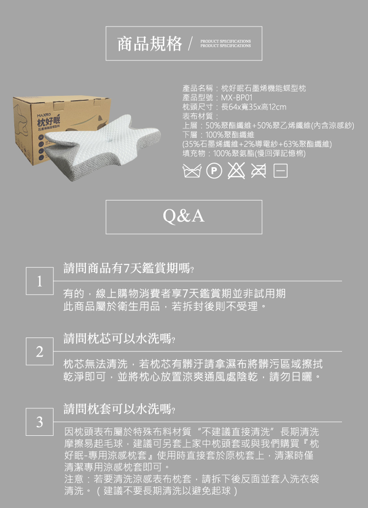 名稱:枕好眠石墨稀機能碟型枕