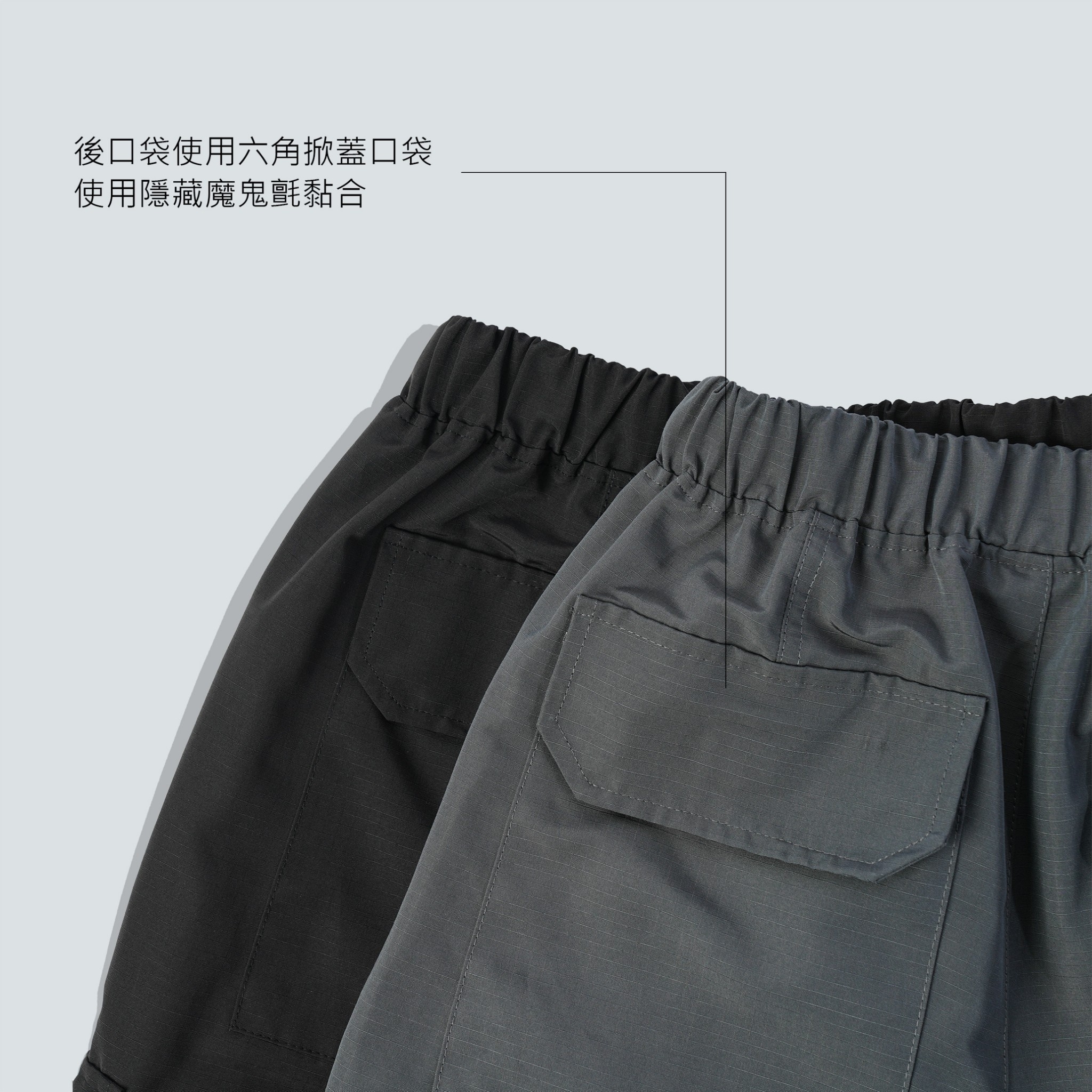 後口袋也採用六角掀蓋口袋