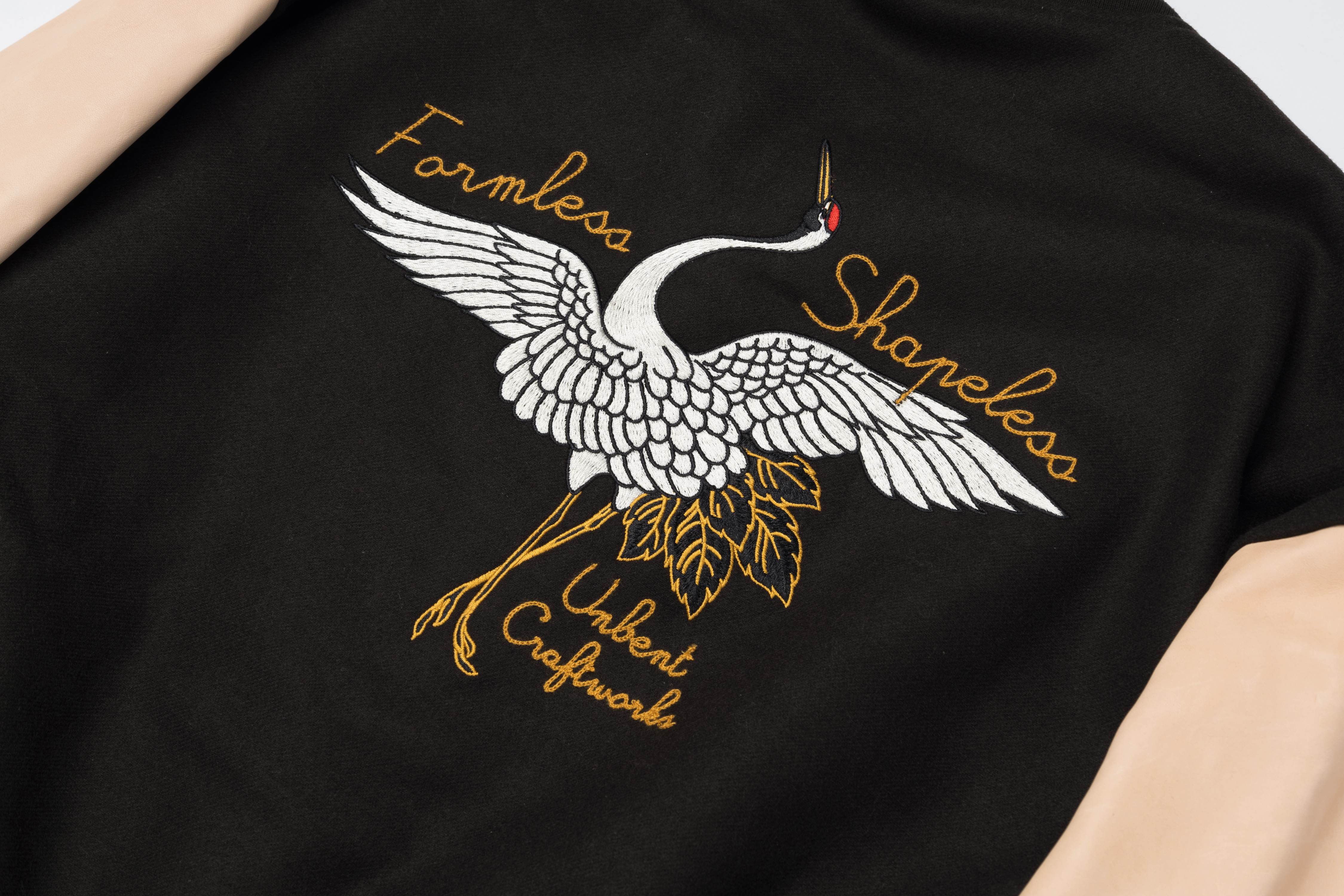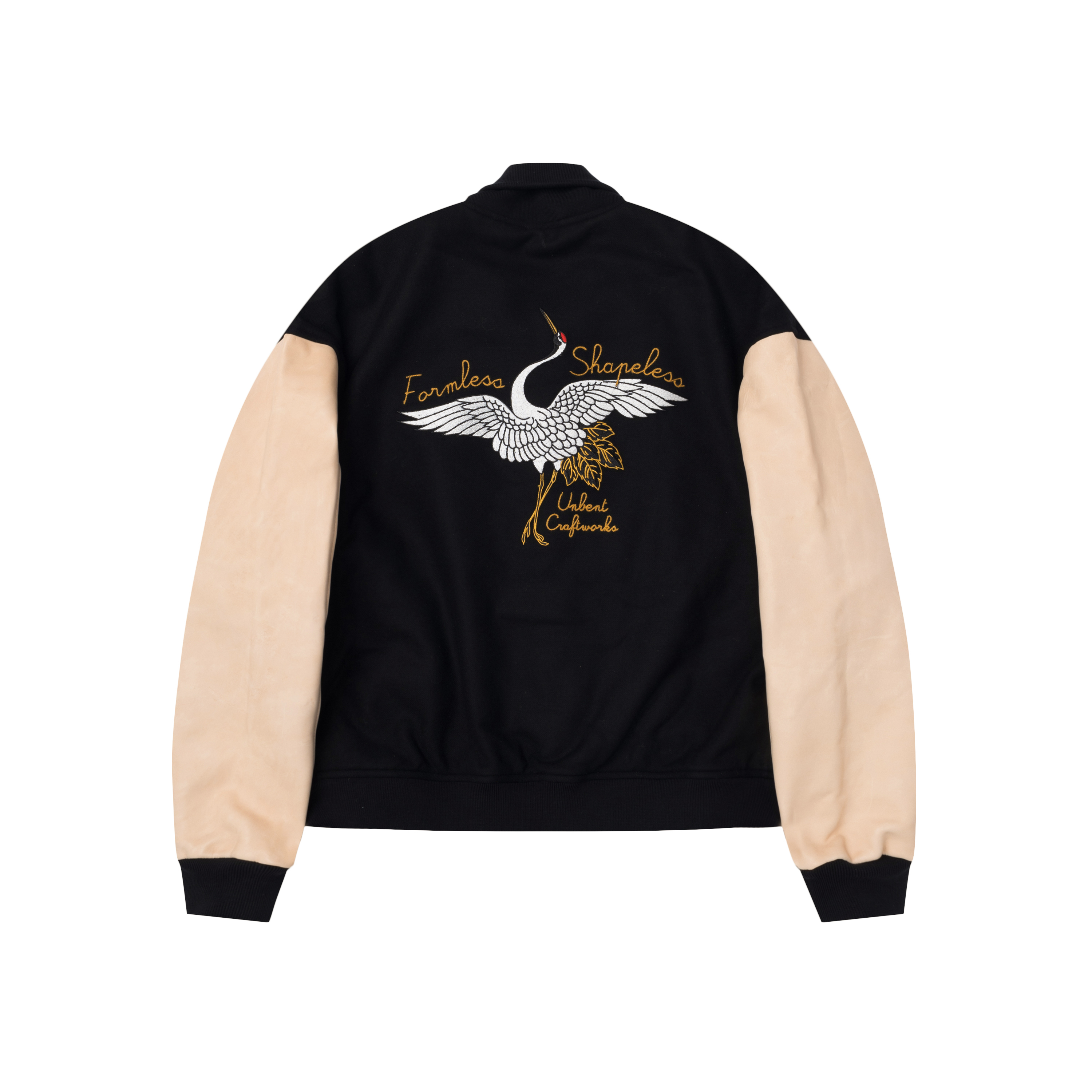 #預購 UNBENT 25AW 復古做舊 馬皮袖 羊毛混紡 仙鶴刺繡 棒球棉外套 兩色