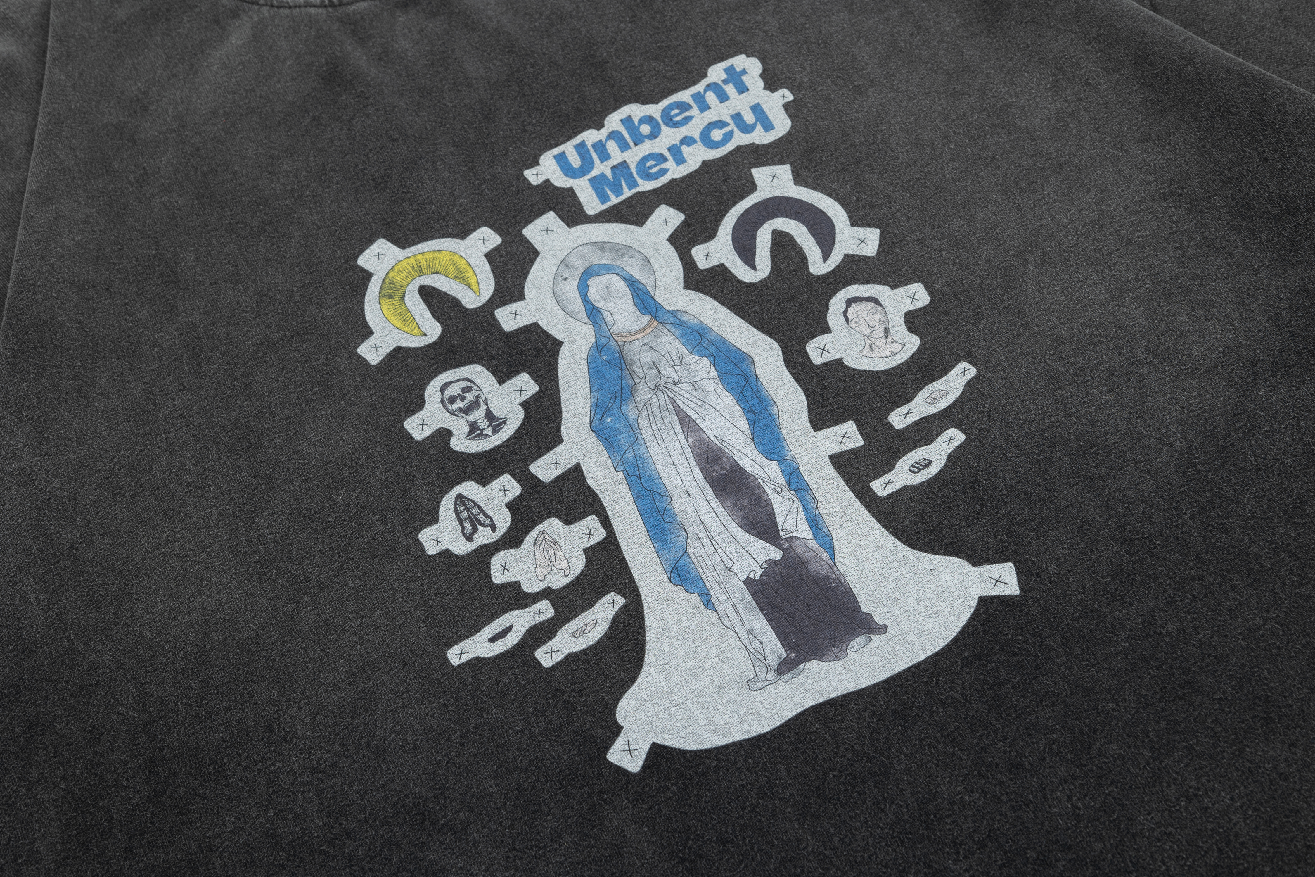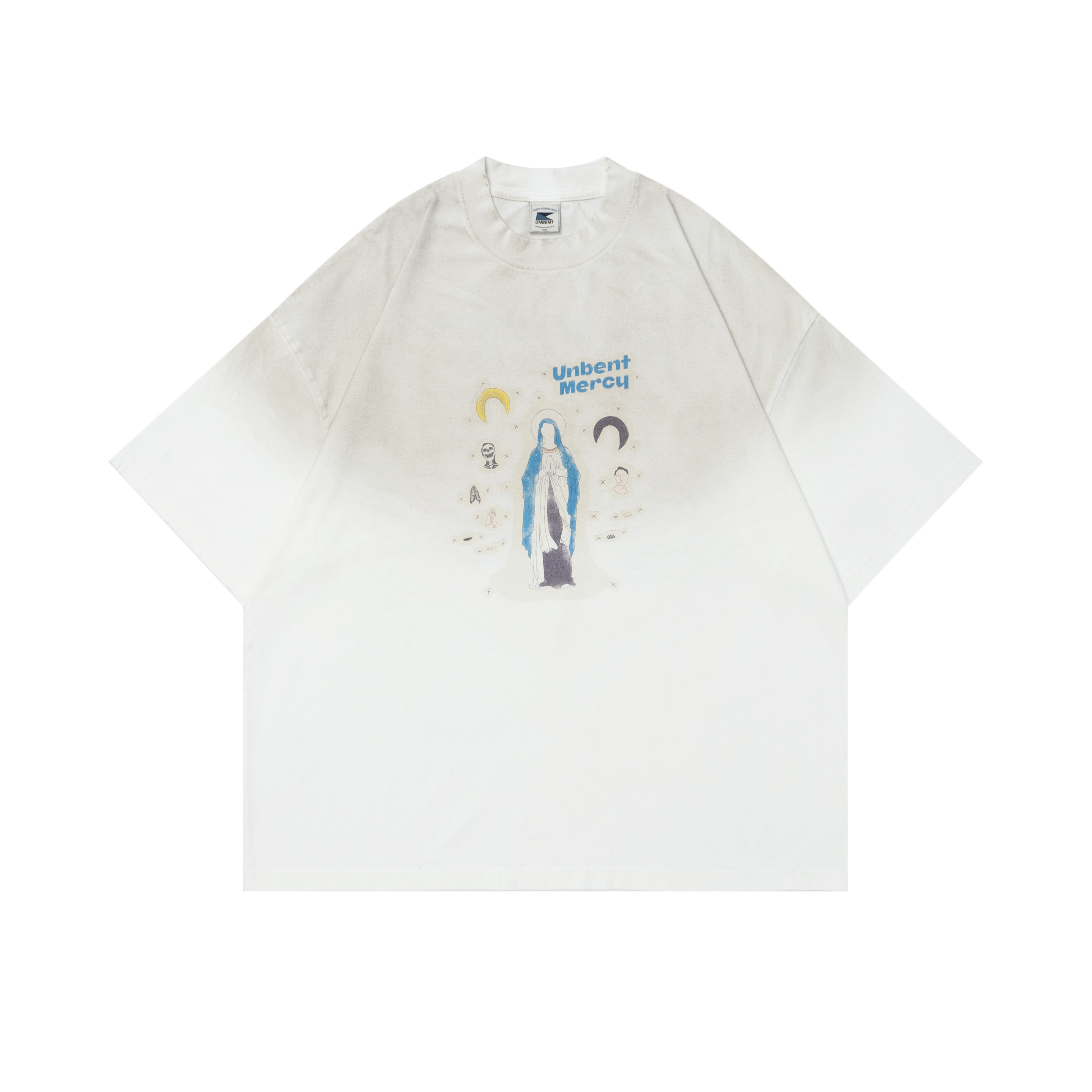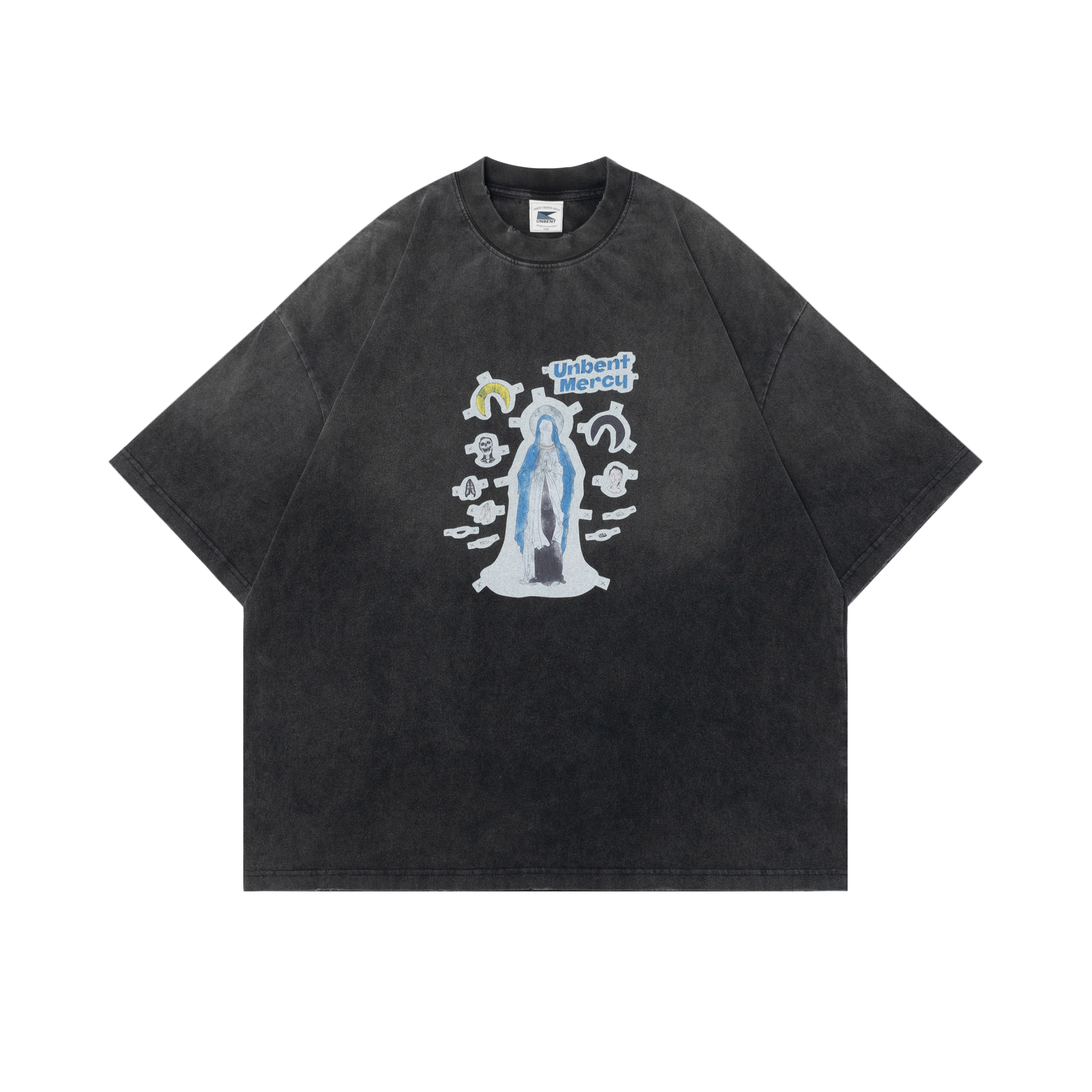 #預購 UNBENT 25SS 復古 水洗髒染 聖母印花短踢 2色