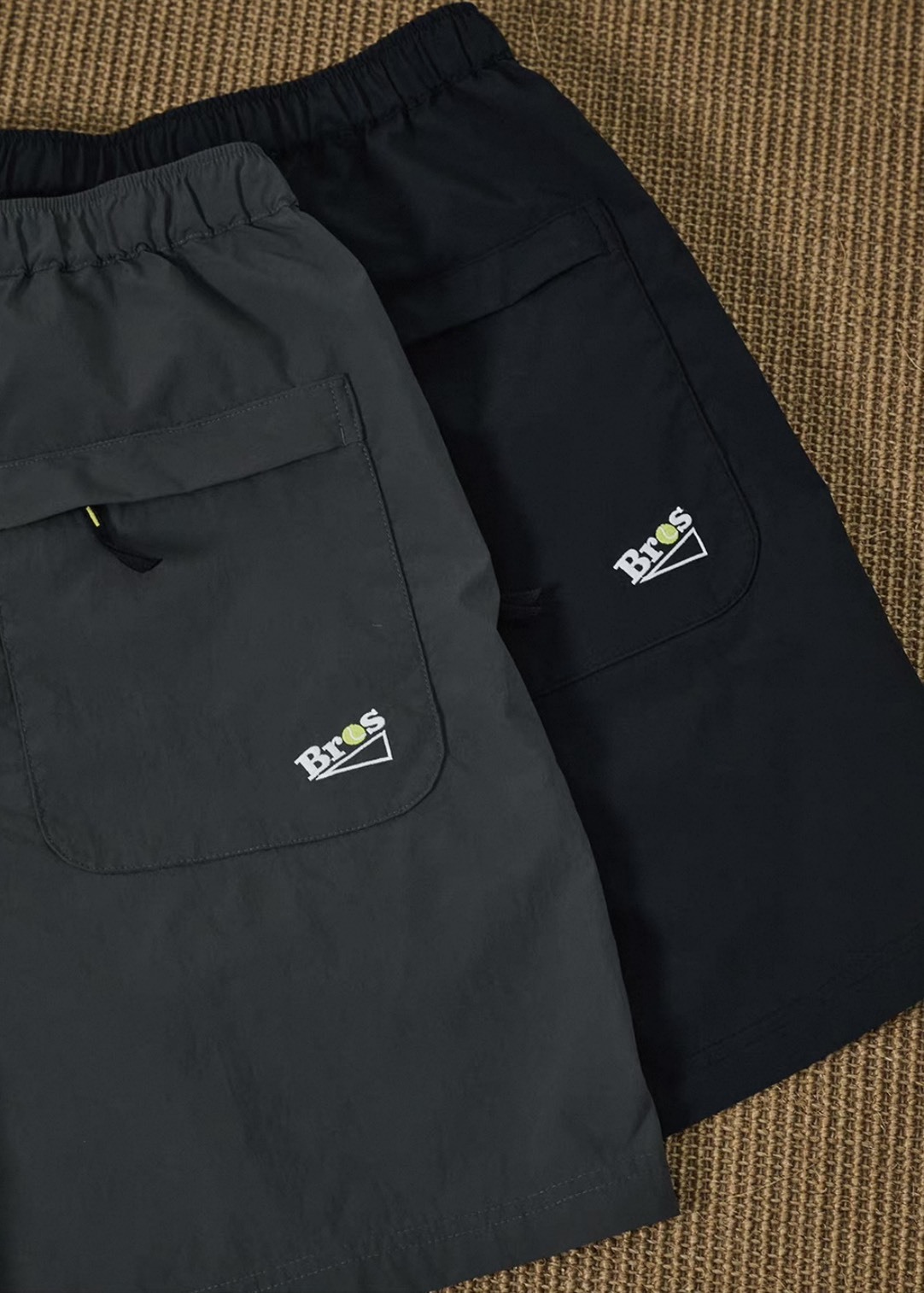 #預購 Broshood 26SS 日系寬鬆 網球系列 繡花拉鍊口袋運動休閒五分短褲 兩色