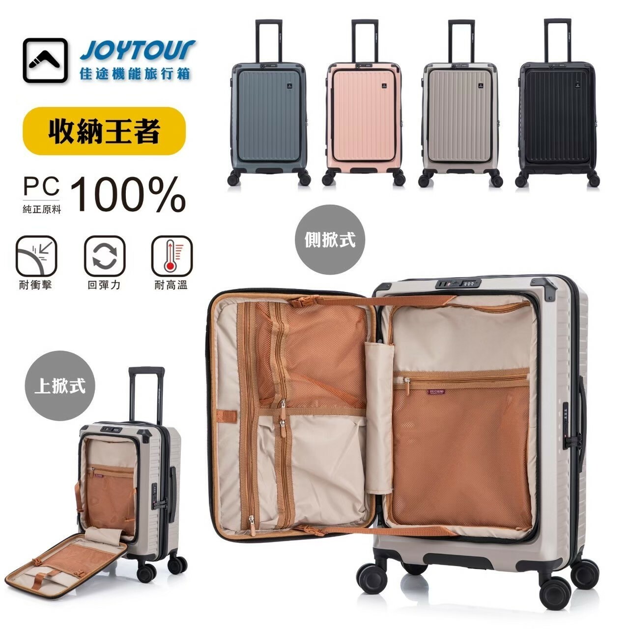 #預購 BJY x【 JOYTOUR 】雙開式行李箱 100%PC 前開式行李箱 靜音輪 四色