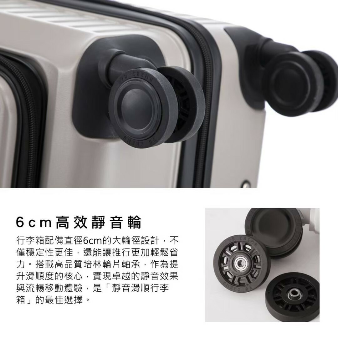 🔺  6cm輪子內為培林軸承,保證超靜音超好推(市售行李箱約5%採用培林輪)